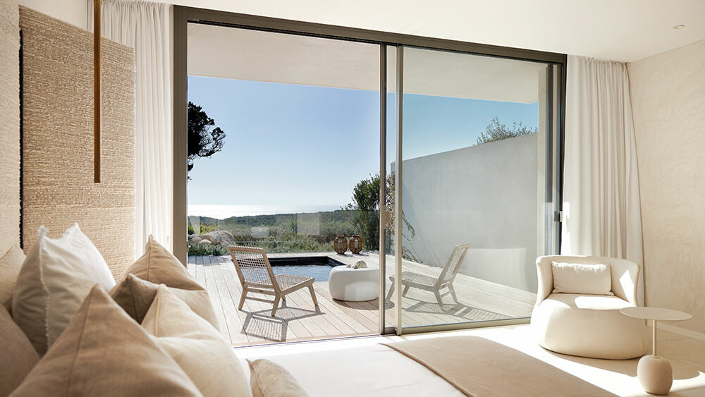 L’architecture se fond dans le paysage, comme si elle y avait toujours été. Chaque suite, baptisée du nom d’une figure mythologique grecque, rend hommage à l’héritage méditerranéen et invite à un voyage à la fois intime et légendaire.
