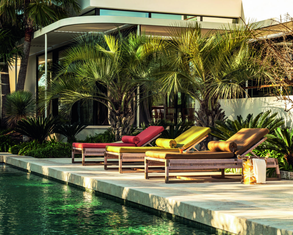 Grâce à des avancées nombreuses dans ce domaine également, les textiles outdoor allient technologie et esthétique, tout en étant vertueux avec du polyester recyclé, par exemple. Il peut être déperlant ou, au contraire, avec une mousse extrêmement perméable et aucune retenue d’eau, donc pas de moisissures. Les matières sont de plus en plus travaillées, les couleurs plus élaborées, le grain et la sophistication de mise pour couvrir un canapé, une chaise longue ou un coussin avec élégance. Comme une réponse spontanée à des années de bien-être recherché, les imprimés décalés et la fantaisie commencent à s’inviter à l’extérieur (voir nouvelle collection Elitis).