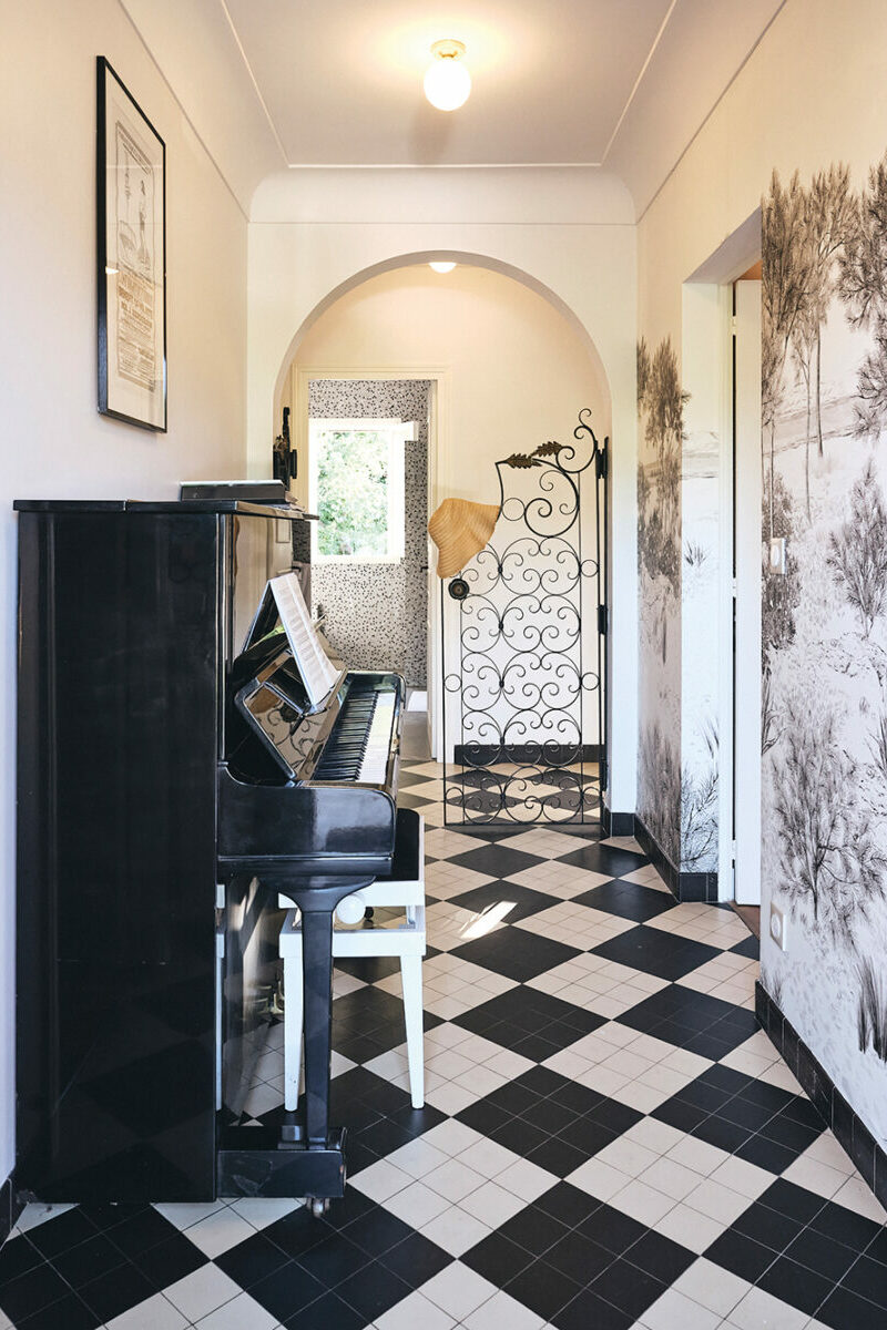 Un damier blanc et noir qui a permis à Jessica de composer ses murs et ses meubles comme les notes d’un piano. Partition bicolore réchauffée par une grande table de bois brut , des objets chinés et des poissons en céramique colorée. Les chambres dégagent une ambiance chaleureuse, lumineuse et relaxante.