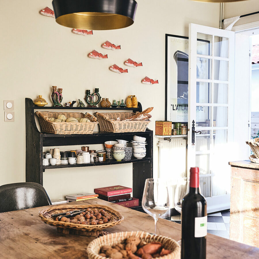 Pour le style, j’ai souhaité un esprit personnel, chaleureux. Les tonalités sont douces et chaudes tout en rappelant les paysages landais. J’ai souhaité une maison qui ait l’air d’avoir toujours existé. Il n’y a pas de style précis, c’est plutôt éclectique avec beaucoup de mobilier chiné, des œuvres d’art et une vraie personnalisation.